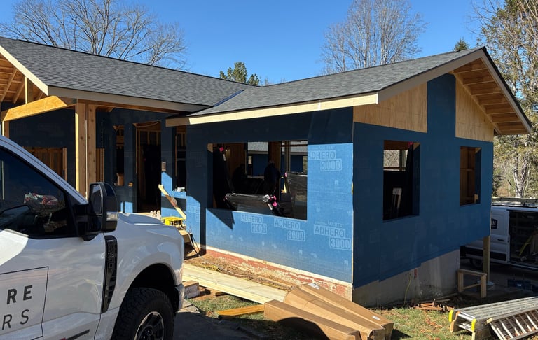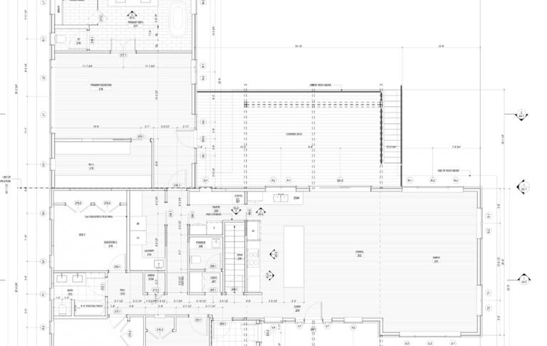 This renovation of an existing home for a growing family includes a nearly full reframe of the Main Level and a new addition to hold the Primary Suite.