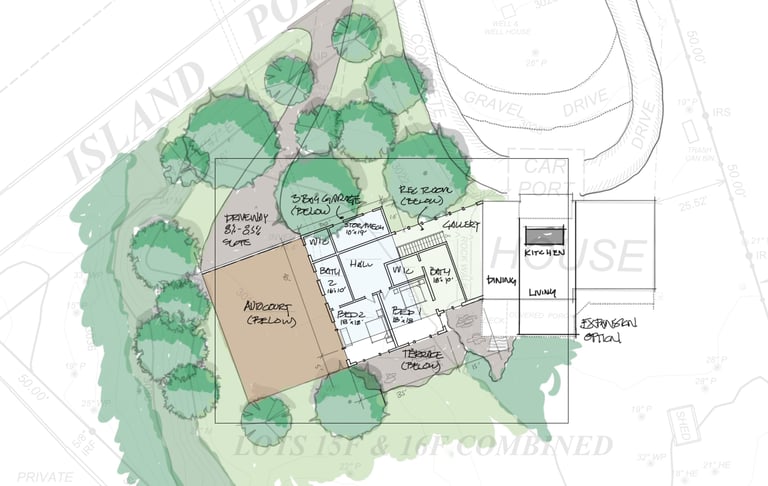This Lake Toxaway Bungalow is functional, but small. We will be designing an addition with 2 Primary Bed/Bath Suites, Rec. Room and 3 car garage with renovation to the existing house.