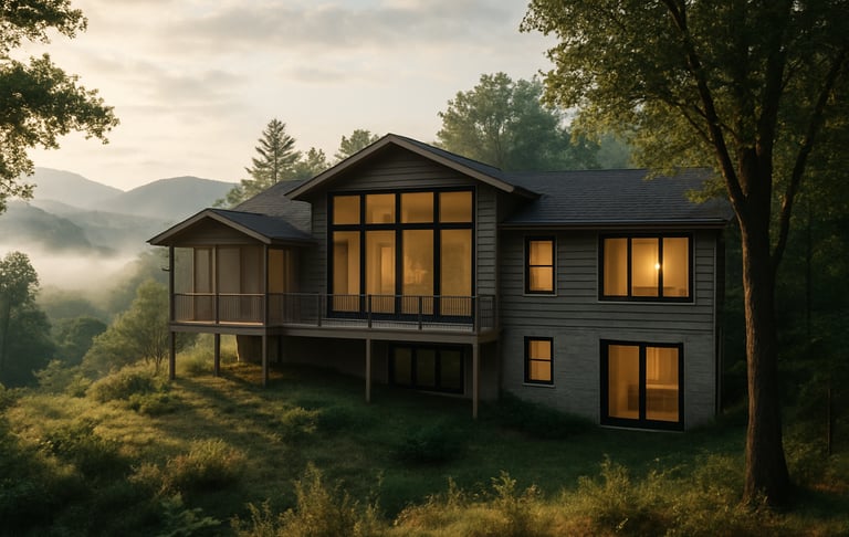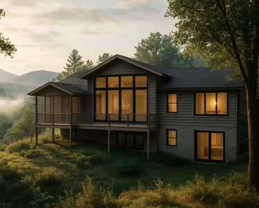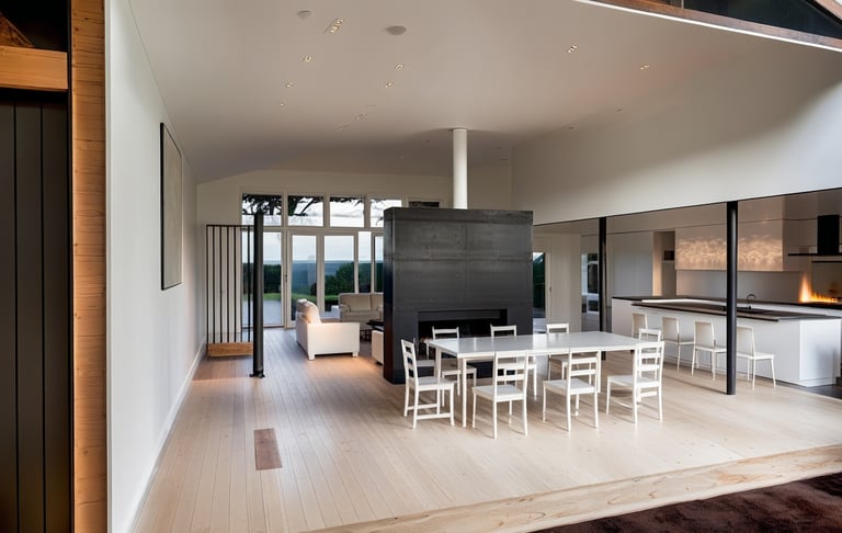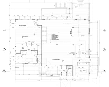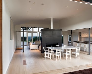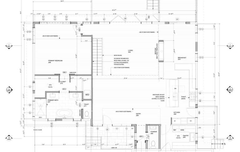 Major renovation of an existing house. New work includes roof reframing and a reorganization of all the Main Level into a centralized Dining/Living/Kitchen space.